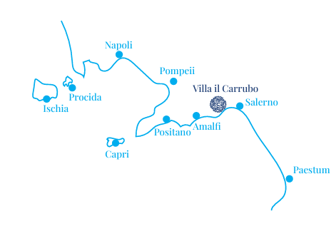 The strategic location of Villa il Carrubo makes it easy for you to explore the charming streets of Naples or, in the opposite direction, the stunning temples of Paestum. We absolutely love when our guests ask us for recommendations on what to see, where to eat (and where not to go), or how to plan a mountain hike or a relaxing yoga session on the terrace.This area is bursting with history, culture, and traditions. From Pompeii to Amalfi, Ravello to Positano, Ischia and Capri; and let’s not forget Salerno, Paestum, and the Cilento, perfect for indulging in culinary tours. You could stay with us for a month and still discover something new every day! Share your passions with us, and we’ll be delighted to help you craft “your experience” of the Amalfi Coast.